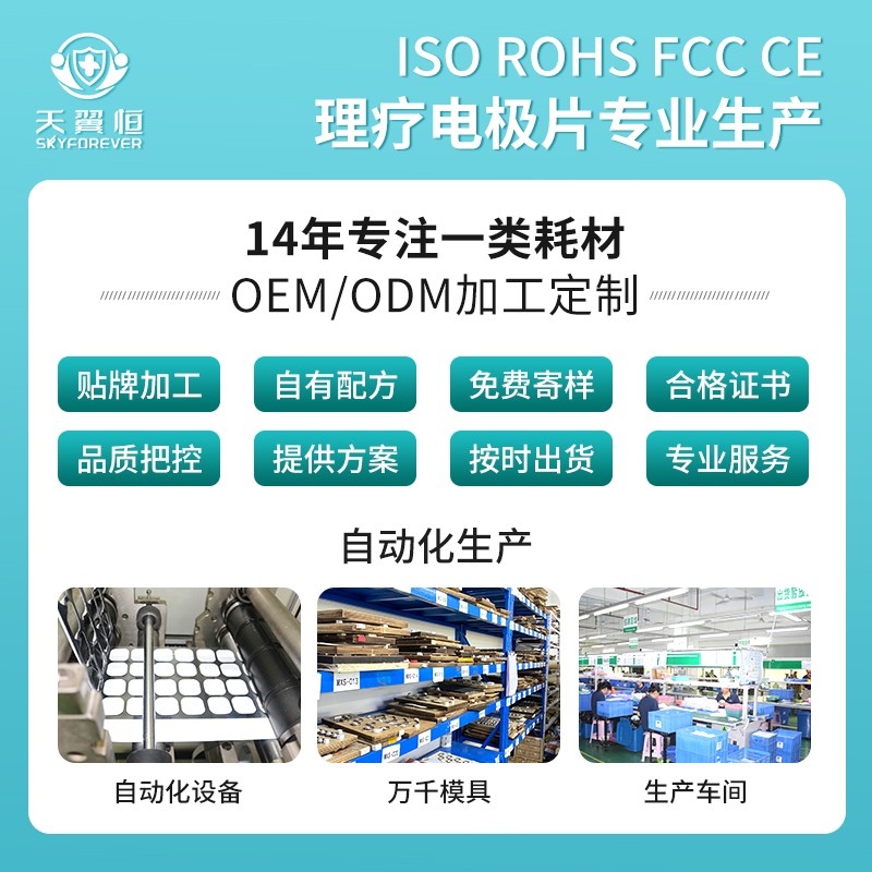 广州电极片厂家天翼恒是国家高新技术企业及专精特新企业,已取得ISO13485、ISO9001、CE、ROHS、生物相容性等权威认证,发明专利达60多项,产品稳定性经云南白药、江苏鱼跃、欧姆龙等知名企业验证。齐全的资质不仅满足全国挂网的合规要求,更让经销商服务医院客户时底气十足。