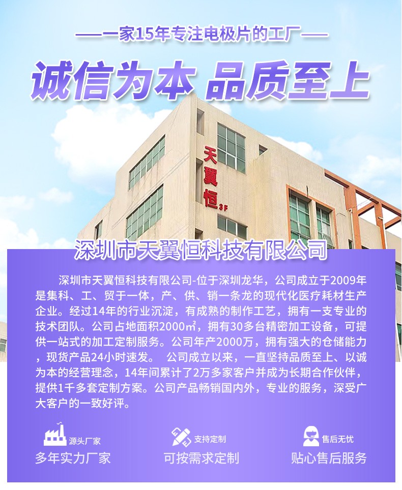 作为国家高新技术企业及专精特新企业,深圳理疗仪电极片厂商在供应链管理上同样具备优势。深圳理疗仪电极片厂商已完成全国各省市医疗产品挂网工作,并通过CE、ROHS、ISO13485等多项认证,完善的资质体系减少了深圳理疗仪电极片厂商订单执行中的合规性阻碍。同时,深圳理疗仪电极片厂商与原材料供应商建立长期合作关系,确保关键物料稳定供应,避免生产中断,保障深圳理疗仪电极片厂商的持续供货能力。