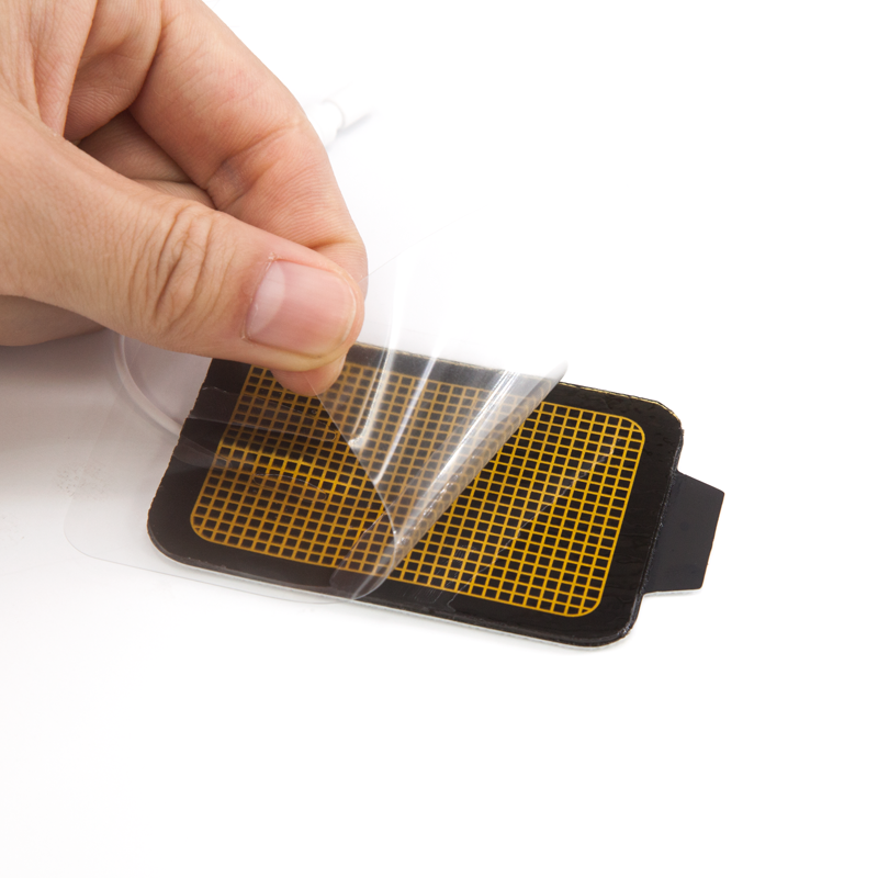理疗电极片主要是配合连接中医定向透药治疗仪,贴敷在人体相应的部位,由治疗仪产生的脉冲会通过贴片进入人体,就像是有无数电针一样,进行模拟的针灸疗法,以及起到按摩治疗的作用和功能。